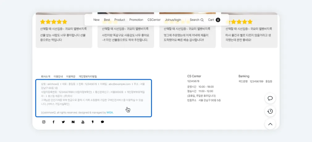 예시) 호스팅 제공자 : (주)위사 / WISA
