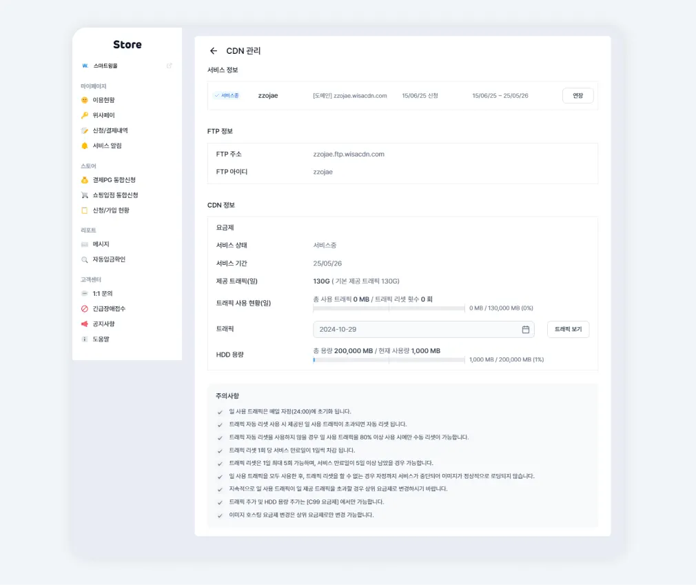 서비스 정보 : 사용 중인 CDN 이용기간 확인 및 연장 가능