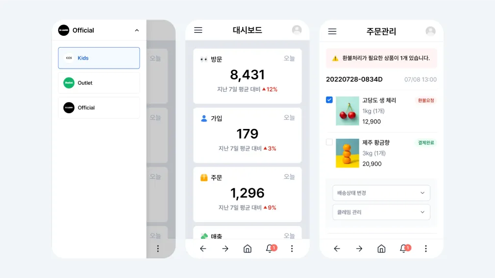 로그인 후 관리할 쇼핑몰 계정을 선택하고 즉시 관리를 시작할 수 있어요!