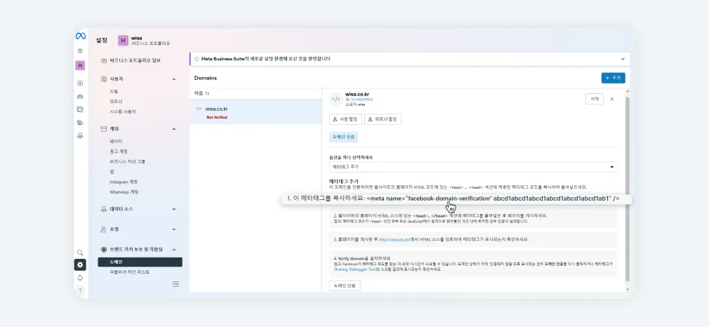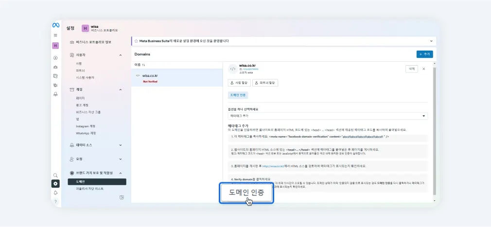 메타 도메인 인증 안내