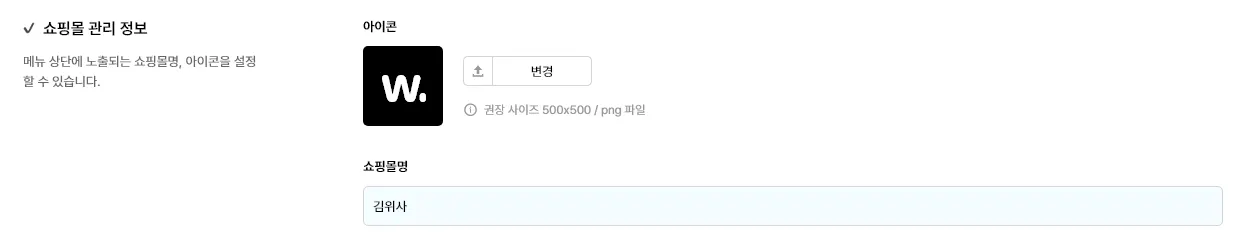 아이콘 : 관리자 브라우저 상단의 멀티샵 표시에 사용될 아이콘을 설정할 수 있습니다.